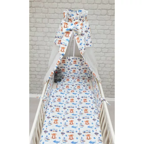 Pihe-Tex Ágynemû Pamut 4 részes 90x140 40x50cm Búgócsigás maci kék 686