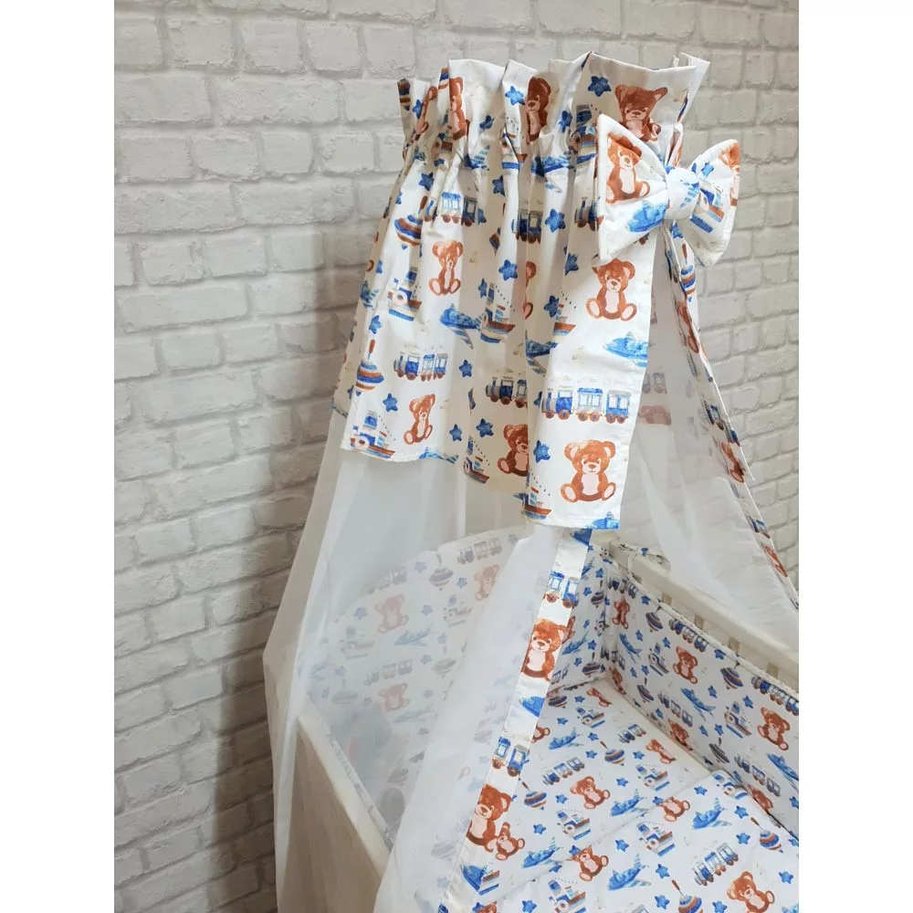 A Pihe-Tex ágynemû bõrbarát, légáteresztõ anyagának köszönhetõen egyenletes hõmérsékletet biztosít, hozzájárulva ezzel kisbabád nyugodt álmához. A párnában és a paplanban lévõ 2 cm vastag poliészter töltet antiallergén. A bõrbarát textilbõl készült Pihe-Tex fejvédõ körbe-körbe kipárnázza a babaágyat, megóvja a folyton izgõ-mozgó Kicsit az esetleges, rács okozta sérülésektõl. Kényelmes, kis bújós fészekké alakítja át a fekhelyét, hogy kisbabád alvás és játék közben is biztonságban érezhesse magát.Rögzítés: kis szalagokkal lehet az ágy rácsához kötözni.A könnyû, légies voilá függönnyel és pamut anyaggal kombinált, dekoratív masnival díszített Pihe-Tex baldachin megkoronázza a babaszobát.Mivel kizárólag kiváló minõségû pamutból készülnek babatextíliáink, ezért méret- és színtartóak.Mosógépben 40 fokon, kímélõ programon tisztítsd õket, és sokáig élvezhetitek szépségüket. Méretek:Párna: 40x50 cmPaplan: 90x140 cmFejvédõ: 360x25 cm vagy 420x25 cmBaldachin: 180x130 cmAnyaga:Baldachin:Bordûr: 100% pamutFüggöny: 100% poliészterPaplan, párna, fejvédõ:Huzat: 100% pamutTöltet: 100% poliészterA képeken látható plüss illusztráció, nem szállítjuk a termékkel együtt.A termék külseje kissé eltérhet a képen szereplõtõl.