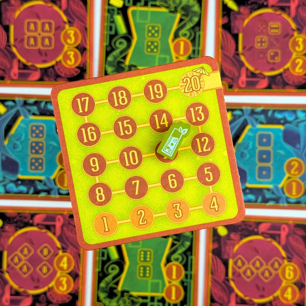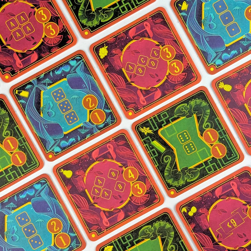 A Piña Coladice igazi különlegessége a kettős győzelmi feltétel, ami minden partit végig feszülten tart. Nyerhetsz úgy is, hogy te gyűjtöd össze először a szükséges pontmennyiséget taktikus helyezkedéssel, de ha igazán bevállalós vagy, megpróbálhatod az igazi bravúrt: rakj le négy jelölőt egy sorba vagy oszlopba, és érd el a Piña Coladice-t, ami azonnali győzelmet jelent! Ez a „négyet egy sorba” mechanizmus adja a játék taktikai mélységét, hiszen nemcsak a saját pontjaidra kell figyelned, hanem az ellenfeleid útját is keresztezned kell.