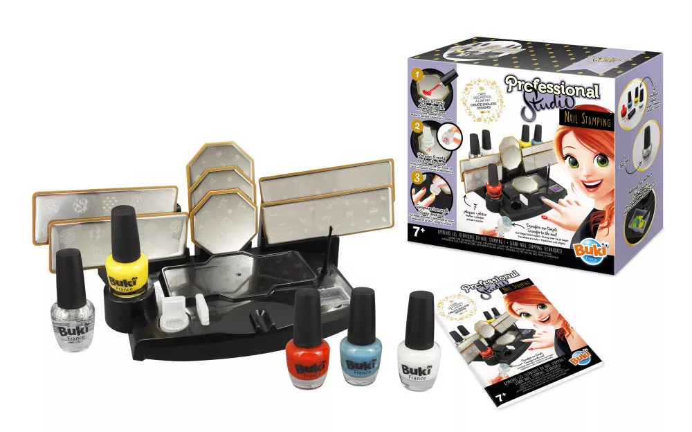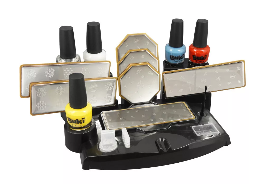 Professzionális körömstúdió körömnyomdázó készlet a Buki France márkától! Válassz ki egy sablont és egy csepp körömlakkal vidd fel a mintát a körmeidre! A 7 rozsdamentes acéllemez lehetővé teszi, hogy végtelen számú mintával, formával és betűvel dolgozz. A színek keverhetők, így új árnyalatokat hozhatsz létre a mellékelt tálca és ecset segítségével.