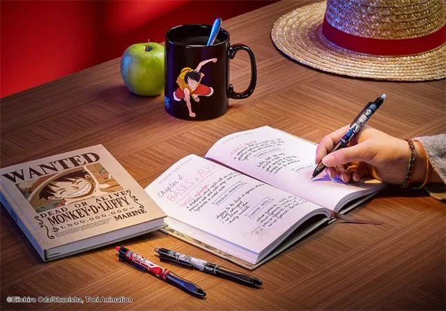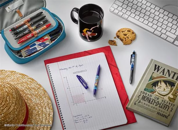 Rollertoll készlet, 0,35 mm, nyomógombos, PILOT "Frixion Ball"/"Frixion Ball Plus", 3különböző szín+One Piece matrica