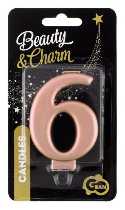 Rose Gold számgyertya, tortagyertya 6-os