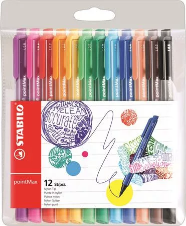 Filctoll készlet, 0,8 mm, STABILO "Point Max", 12 különböző szín