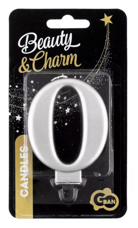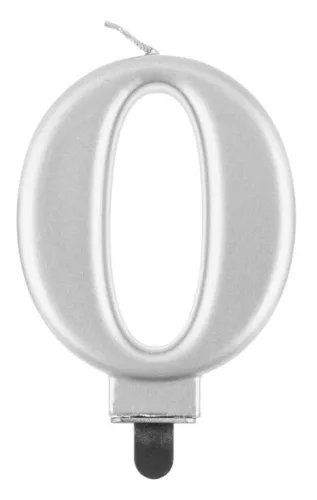 Ezüst számgyertya, tortagyertya 0-ás