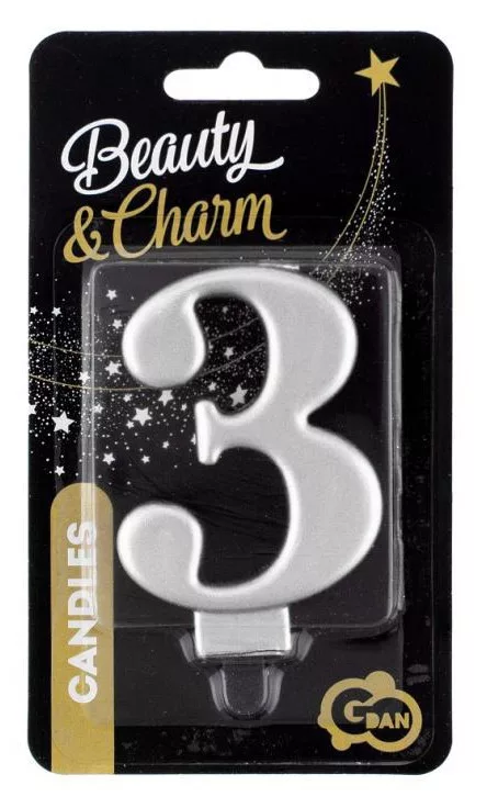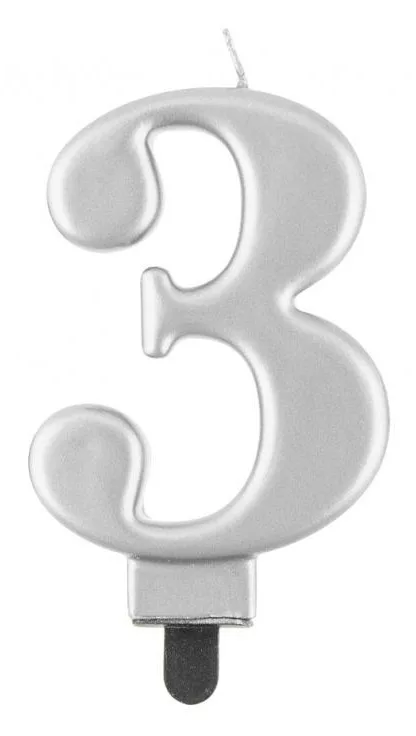Ezüst 3-as Metallic számgyertya, tortagyertya