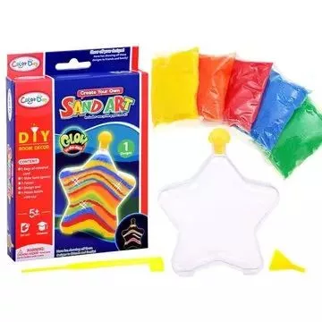 Homokdísz készítő szett kreatív gyerekeknek. A különböző színű homokokat bárhogy el lehet rendezni, így mindig egy tökéletesen egyedi alkotás születik. Nagyszerű ajándék szeretteinknek, de a végeredmény akár a szoba dísze is lehet.