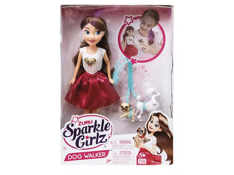 Ismerje meg a Dog Walker Sparkle Girl-t! Hatalmas állatbarát, és nemrégiben fogadott örökbe 2 új kölyköt! Segíts neki sétáltatni őket a parkon, vagy átfutni a városon ezekkel a szuper aranyos kutyákkal a szettben található színes hajlékony póráz segítségével. A kutyusoknak sok odafigyelésre van szükségük, ezért segíts a Sparkle Girlnek, hogy vigyázzon rájuk, ügyelve arra, hogy túlzott és boldogok legyenek! A Sparkle Girlz babának gyönyörű, részletgazdag jellemzői, szép haja és teljesen levehető ruházata van.