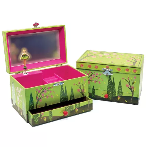 Svoora zenélő ékszerdoboz gyűrűtartóval, fiókkal és széles tükörrel 'Seasons'