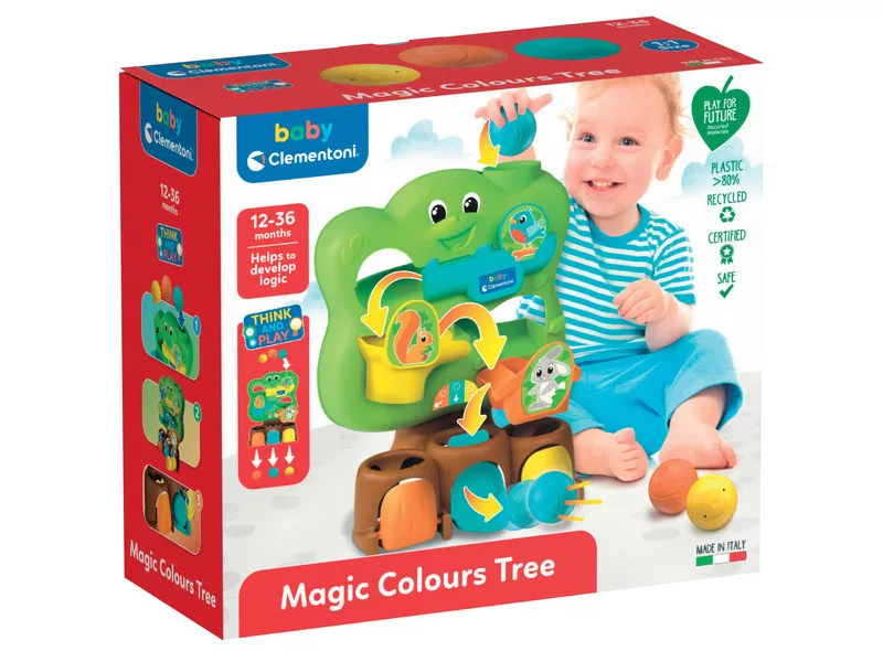 Egy vidám fa csúszdákkal, labdákkal és ajtókkal, amelyek segítik a kisgyermekeket a logikus gondolkodás-, a szem-kéz koordináció fejlesztésében és az ok-okozati összefüggés megértésében. Újrahasznosított műanyagból Olaszországban gyártott, szórakoztató golyós játék. A három különböző méretű golyó egy fatörzsbe esik, és mintegy varázsütésre az azonos színű ajtó mögött köt ki. Edzi a manuális készségeket (labdafogás, ajtónyitás), a kéz-szem koordinációt (labdák behelyezése a lyukon) és a logikus gondolkodást. Élénk, színes és mulatságos dizájn a fának köszönhetően, amely madárbarátaival együtt vicces karakterré válik.