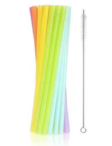 Színes műanyag újrafelhasználható szívószál 17 db-os + kefe