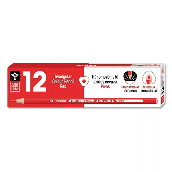 Háromszögletű,ergonomikus kialakítású színes ceruza, törésálló béllel, piros színben. Könnyen hegyezhető. A ceruzatest és a ceruzahegy színe megegyezik. 12 db/doboz.