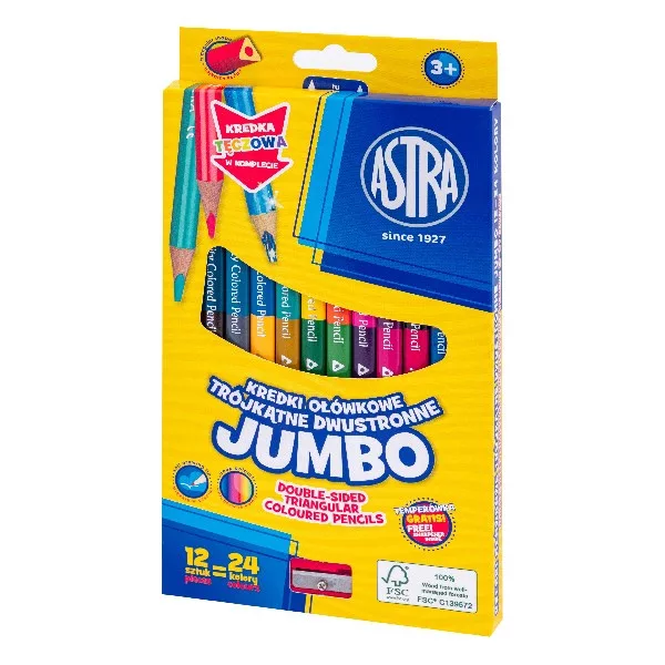 Színes ceruza ASTRA Jumbo hengeres duó kétvégű hegyezővel 12 darabos 24 színű