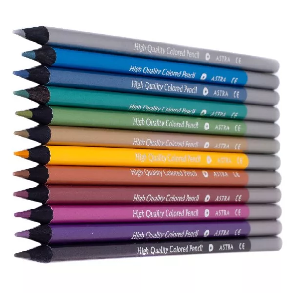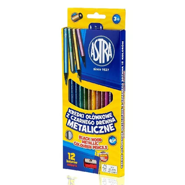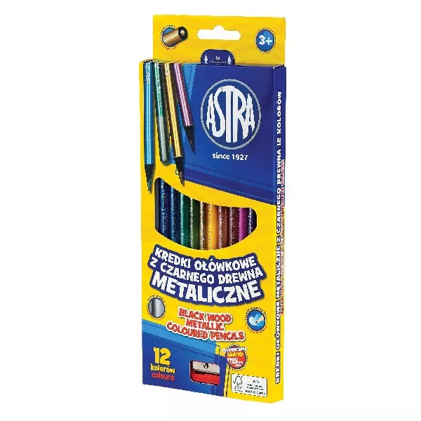 Színes ceruza ASTRA hengeres metál 12 színű ajándék hegyezővel