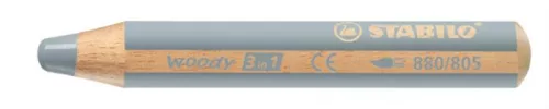 Színes ceruza, kerek, vastag, STABILO "Woody 3 in 1", ezüst