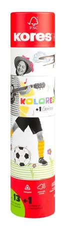 Színes ceruza készlet, háromszögletű, 1 grafittal, 1 hegyezővel, KORES "KOLORES Twist & Turn", 12 különböző szín