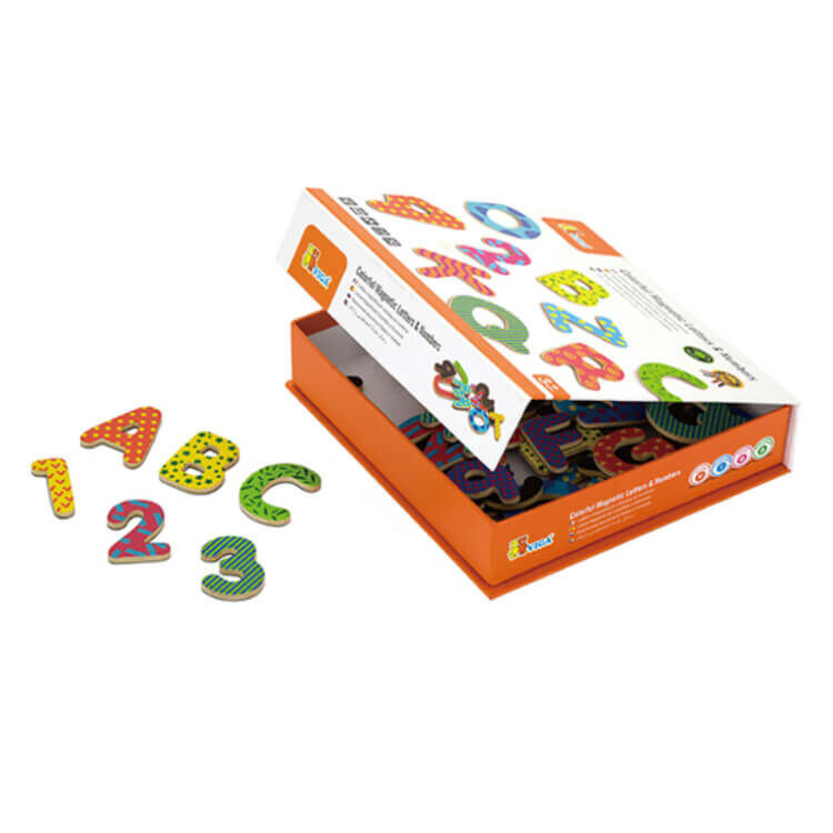 Színes, fa mágneses betűk és számok rajz- és mágnestáblához.