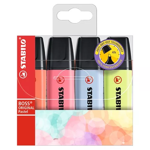Szövegkiemelő Stabilo Boss Original pastel 4 db-os klt. (halvány korall, cseresznyevirág, ködös kék, harmatos lime)