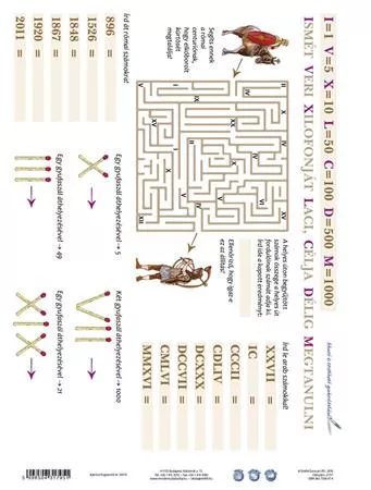 A római számokat gyakoroltató munkalap. Bármilyen kapcsos mappába lefűzhető, a többi tanulói munkalappal együtt gyűjthető, így válnak rendszerezhetővé, áttekinthetővé az alapismeretek. Előnye, hogy dupla oldalas: az egyik oldala tanít, a másik gyakoroltat. A tanuló önmagát is tudja ezáltal ellenőrizni. Mivel vízálló, írható- letörölhető a felülete, újra és újra használható.