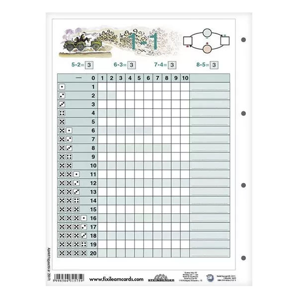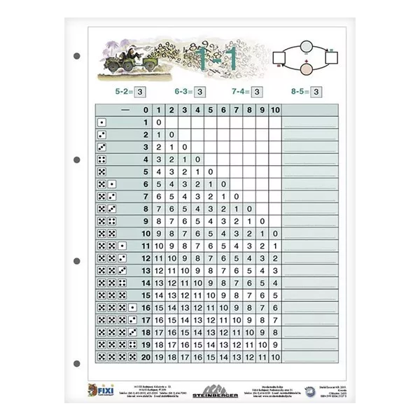 A két legfontosabb alapműveletet megismertető tanulói lap párosunk e tagja a kivonást mutatja be a kisdiákoknak 20-ig.