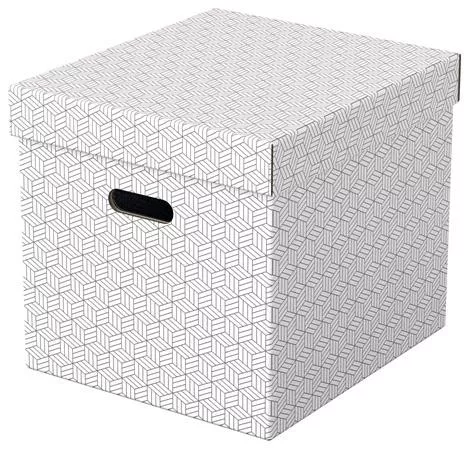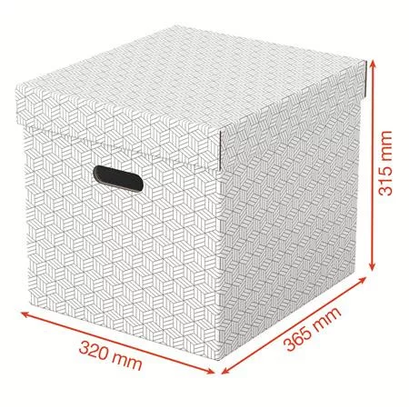 Modern, nagy méretű, kocka alakú karton tárolódobozok levehető tetővel otthoni tároláshoz. Három azonos méretű doboz, amelyeket önállóan vagy polcokra, szekrényekbe helyezve használhat iratrendezők dokumentumok archiválásához az otthoni dolgozósarokban vagy az irodában, illetve könyvek, játékok rendezett tárolásához a nappaliban, hálószobában. Tökéletes választás a kocka formájú könyvespolcokhoz. -100% -ban újrahasznosított és 100% -ban újrahasznosítható -a kivágott fogantyúknak köszönhetően könnyen áthelyezhető -FSC minősített hullámkartonból -szárazon törölhető felület, geometrikus mintázattal a stílusos tárolás érdekében -gyorsan és egyszerűen összeállítható -duplafalú kialakítás biztosítja a dobozok stabilitását és gondoskodik a tartalom védelméről -3 darabos karton doboz szett modern és stílusos geometriai mintázattal -a kivágott fogantyúknak köszönhetően könnyen áthelyezhető az egyik szobából a másikba -levehető tetővel, mely elrejti a doboz tartalmát és védi a portól -a semleges színeknek és visszafogott dizájnnak köszönhetően tökéletesen illik bármilyen enteriőrbe -lapraszerelt csomagolás, gyorsan és könnyen öszeállítható -100%-ban újrahasznosított és 100%-ban újrahasznosítható, műanyagmentes csomagolás -mérete: 320 mm x 315 mm x 365 mm Gyártó/első EU forgalmazó elérhetősége: Esselte Kft. 1139 Budapest, Lomb u. 37-39. A ép. II. 8. hungarymarketing@acco.com https://www.accobrands.com/brands/