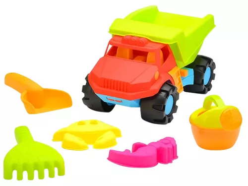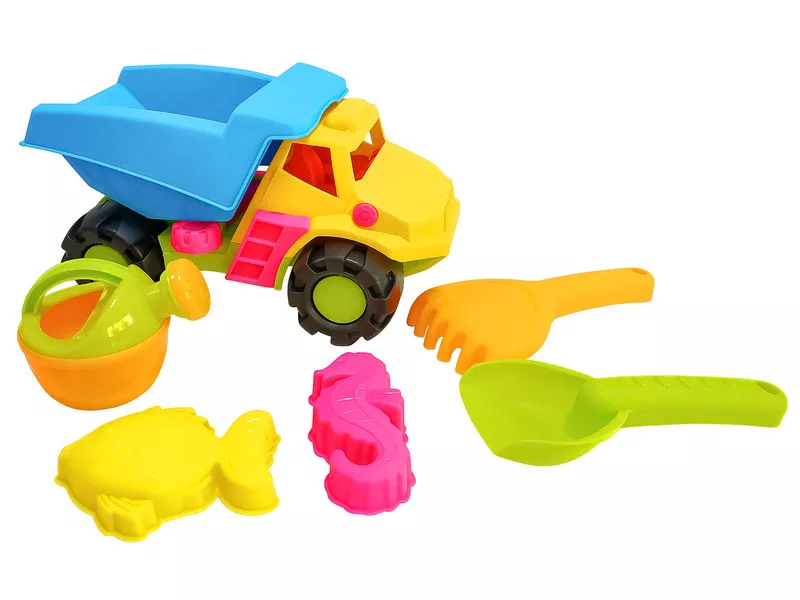Építs homokvárat, vagy szállítsd az építőanyagot dömperrel! A Teherautós homokozó 6 darabos készlet egy műanyag teherautót, lapátot, szitát és homokzó formákat tartalmaz, amik elengedhetetlenek a homokozóban! A dömper platója dönthető, a formákkal különböző módokon dekorálhatod a homokvárakat!