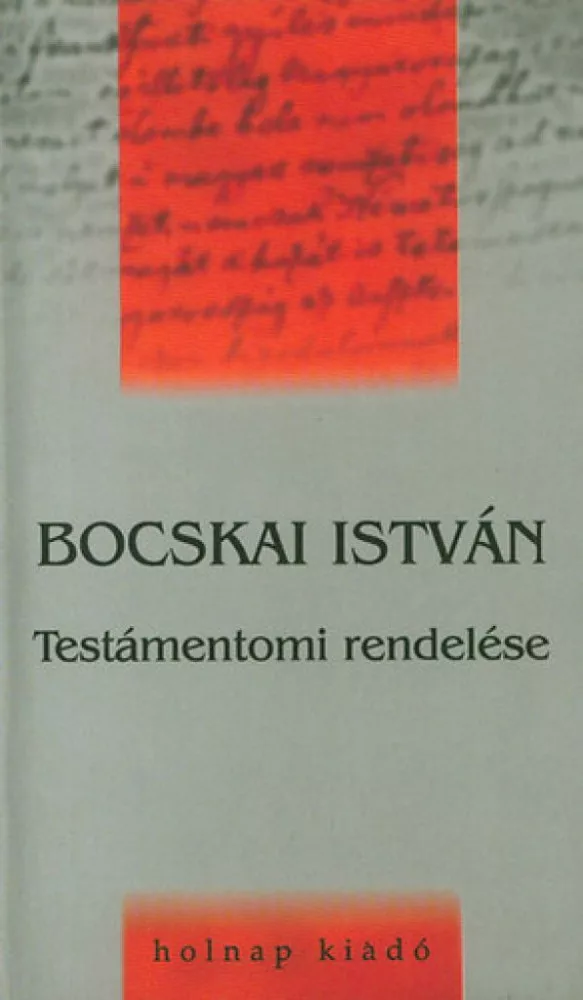 Bocskai István erdélyi fejedelem. Testámentomi rendelése nagy fontosságú politikai irat: évszázadokra érvényesen fogalmazta meg a fejedelem 1606 decemberében, hogy Erdély miképpen szolgálhatja leghasznosabban a magyarság ügyét. A Habsburgok ellenében önállóságával; Magyarországhoz unióval kötődve, ha Budán magyar a király. Bocskai politikai testamentuma, államférfiúi szelleme minden későbbi korokban iránytű volt Erdély politikusai számára: elfogadták alapelveit vagy elutasították - megkerülni, harmadik utat választani tisztességgel és eredménnyel nem lehetett. Az előszót és a jegyzeteket Szigethy Gábor írta.