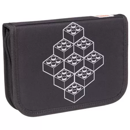 Tolltartó, klapnis, cipzáras, töltött, LEGO "Bricks", fekete-mintás