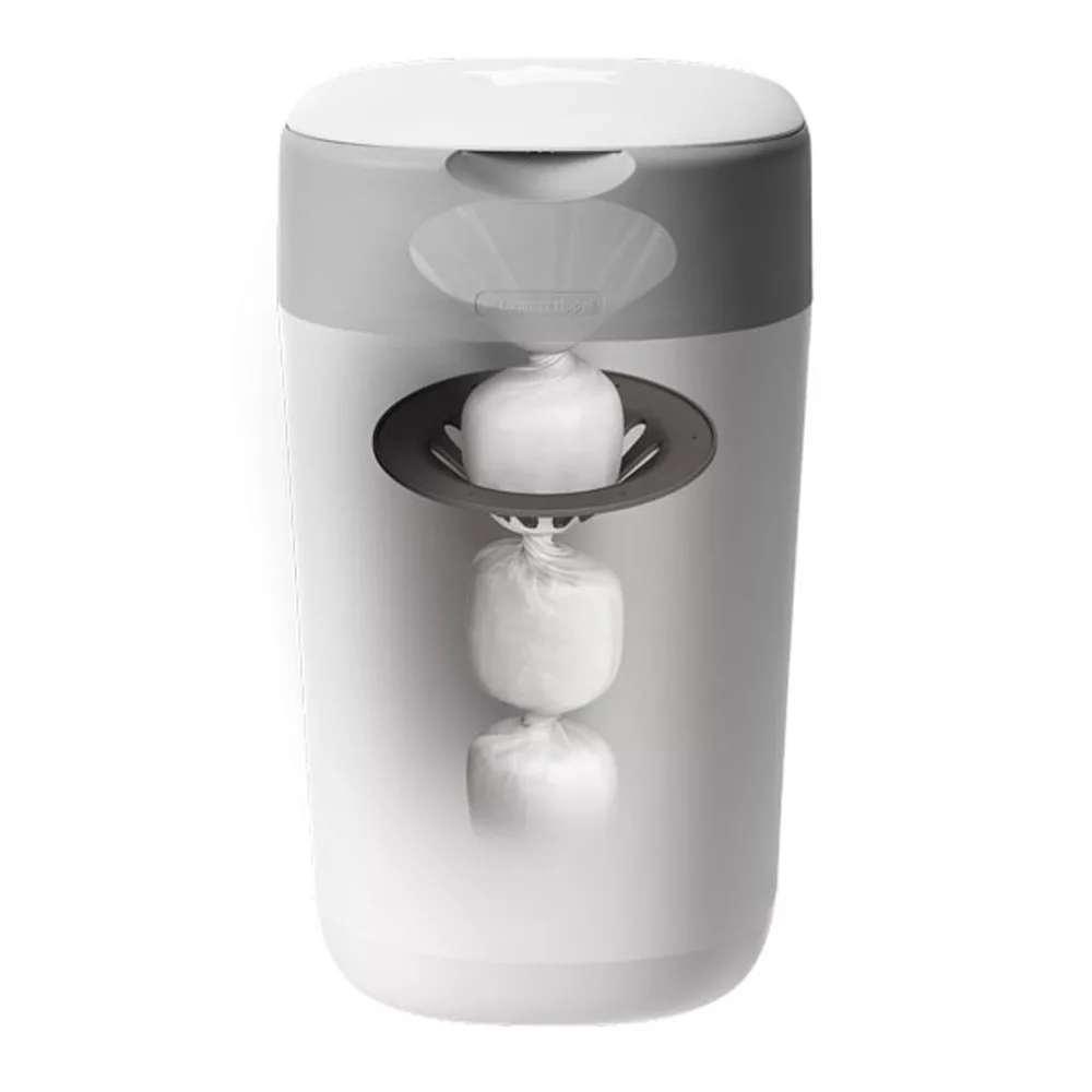 A Tommee Tippee Sangenic pelenkacsomagolói segítenek a pelenkacserét gyorsabbá, egyszerûbbé és higiénikusabbá tenni, megspórolva ezzel számtalan sétát a kinti szemetes kukához. Egyszerûen kezelhetõk, stílusosak, és helytakarékos megoldást jelentenek, hogy a szoba tiszta és jó illatú maradjon.A Twist & Click pelenkacsomagoló a Sangenic TEC új, továbbfejlesztett generációja. Az egyetlen olyan pelenkacsomagoló rendszer, amely egyesével, külön-külön zárja el a használt pelenkát, verhetetlen szagvédelmet biztosítva.A Twist & Click (csavard és klikk) technológia segítségével a pelenkát egy 360°-os csavaró mozdulattal szagmentesen elzárja egy antibakteriális bevonattal ellátott többrétegû zacskóba. A kattanás pedig jelzi a teljes fordulat végét, így használata nem igényel több zacskót, mint ami feltétlenül szükséges. Az antibakteriális réteg a káros baktériumok – mint például az e-coli és Staphylococcus Aureus – 99%-át elpusztítja.Lapos kialakítású teteje könnyen kinyitható a fal mellett is, így valóban helytakarékos megoldást jelent. Utántöltõ kazetták 1, 3 illetve 6 db-os kiszerelésben kaphatók hozzá, és már 99%-ban újrahasznosított mûanyagból készülnek. Az utántöltõ használható a régebbi Sangenic TEC pelenkacsomagolóhoz.6 db ajándék utántöltõvel.- Fontos! A termék egészségvédelmi és higiéniai terméknek minõsül. Amennyiben a csomagolás felbontásra került, vagy a kipróbálás jelei látszódnak a terméken, úgy a 14 napos elállási jog érvényét veszíti a 45/2014. (II. 26.) korm. rendelet 29. § (1) bekezdése alapján.