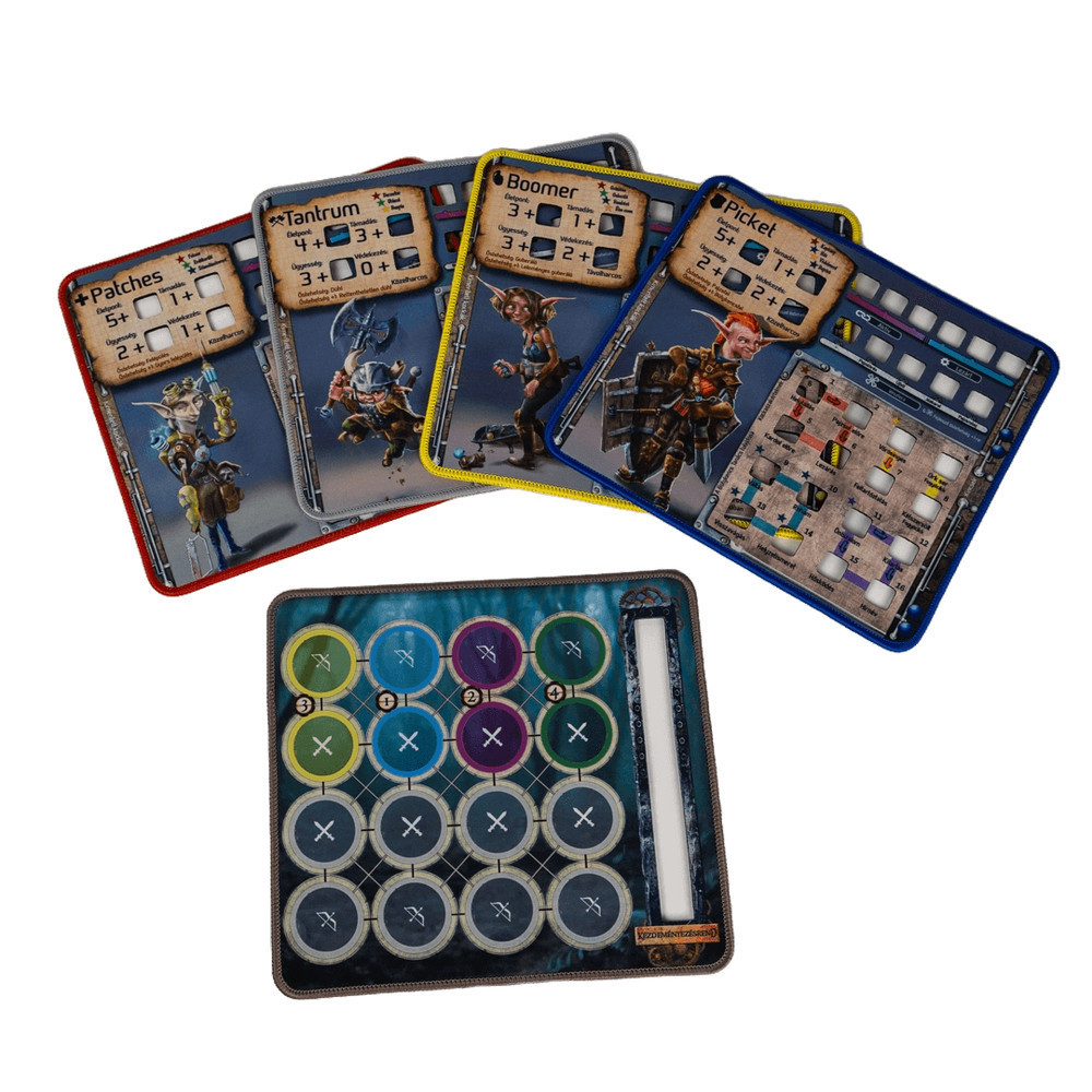 1 harctábla, 4 bütykencsjelölő, 4 sávjelölő, 1 naptárcsa, 65 életpontjelölő, 28 egypontos gonosz, 20 ötpontos gonosz, 7 húszpontos gonosz, 4 bütykencsábla, 6 különleges találkozás, 30 általános találkozás, 12 szóló találkozás, 12 zsarnok találkozás, 40 zsákmány, 20 lelet, 1 feddőkártya, 1 napkártya, zsarnokok, 64 bütykencsszakértelem-kocka, 8 hatáskocka, 16 tulajdonság-kocka, 4 bütykecskezdeményezés-kocka, 4 gonoszkezdeményezés-kocka, 12 támadás-kocka, 18 védekezéskocka, 4 zártörőkocka, 1 fordulójelző-kocka, 1 hatoldalú kocka, 4 kockatároló, 1 jelölő, 5 segédlet