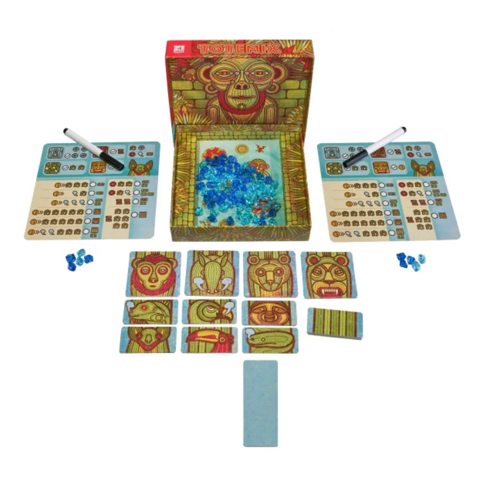 A Totemix egy izgalmas taktikai társasjáték, ahol licitálnod kell, hogy megszerezd a legértékesebb nyersanyagokat, amelyekből megépítheted a saját faragott totemoszlopodat.