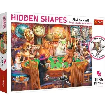 Trefl Hidden Shapes: Pókerező kutyák puzzle rejtett alakzatokkal - 1086 darabos