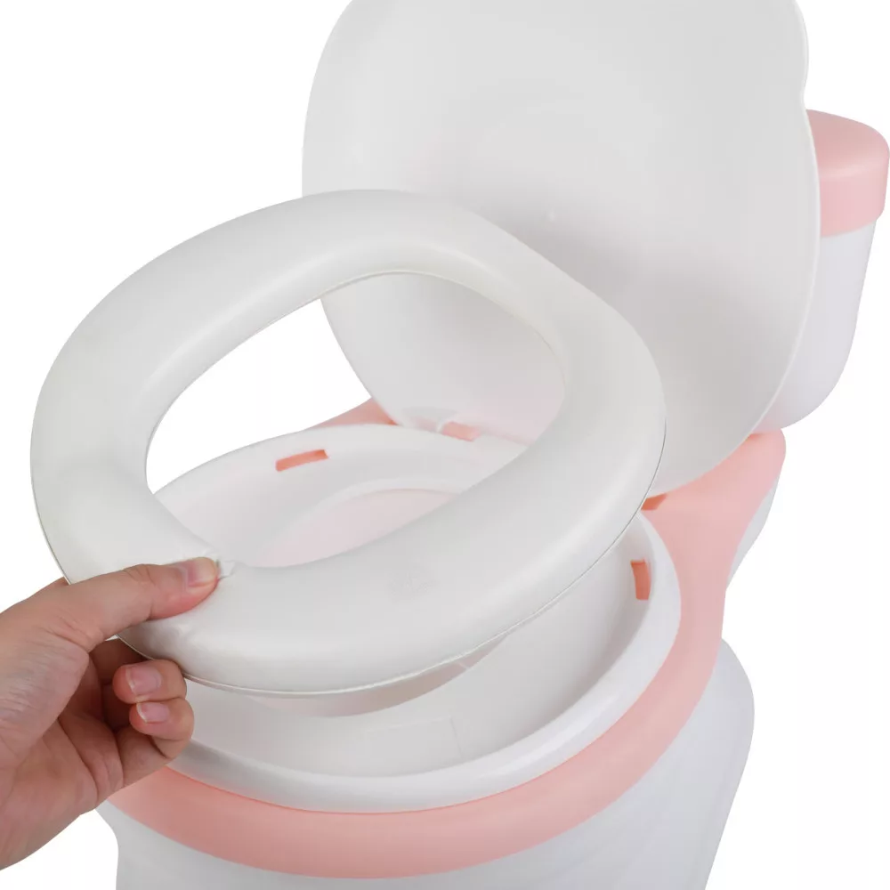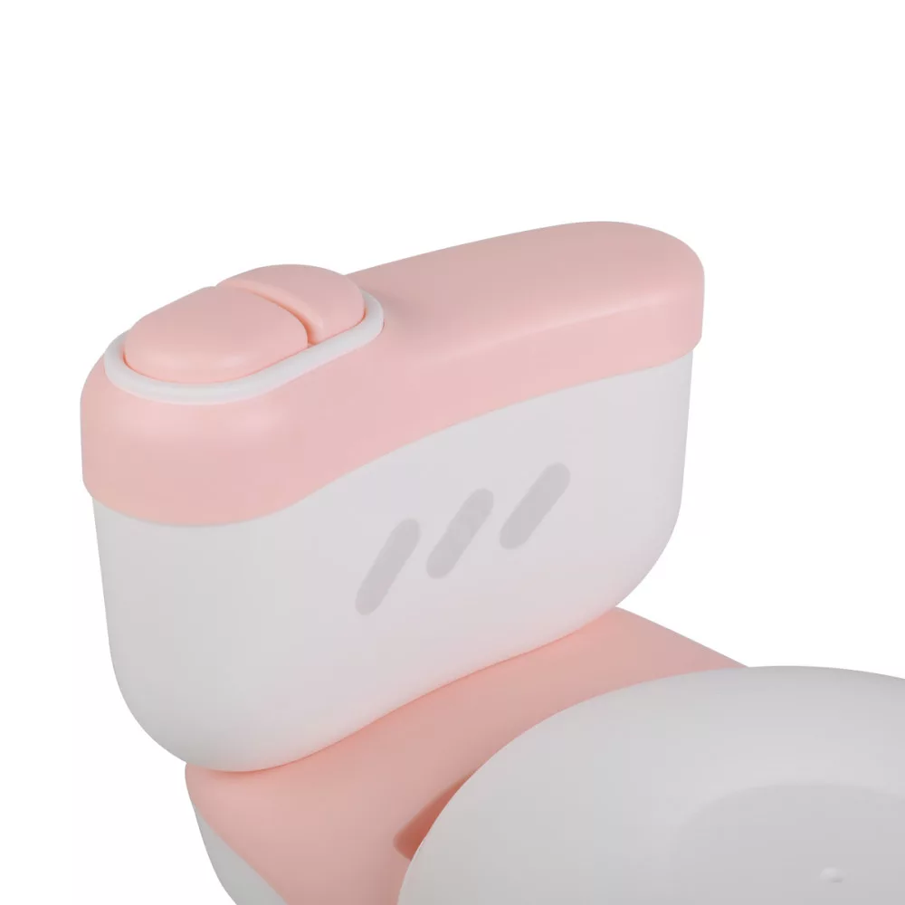 A szobatisztaság némelyik gyereknek könnyen megy, míg mások igen nehezen szoknak le a pelusról. Erre az élethű Wc formájú bilire, viszont minden kisgyerek szívesen fog ráülni. Ülőkéje puha párnázott, ami a maximális kényelemért felel és mindemellett még a dolguk végeztével úgy is tudnak tenni, mint a nagyok hiszen a gombok megnyomásával igazi lehúzó hangot ad ki a bili. Mi szülők is szeretni fogjuk, hiszen könnyen szétszedhető, kiüríthető és minden eleme tisztán tartható. Az öblítőtartályba még wc papírt is tudnunk betenni, hogy az mindig kéznél legyen. Ez a szép halvány rózsaszín bili, pedig biztos minden kislány kedvence lesz.