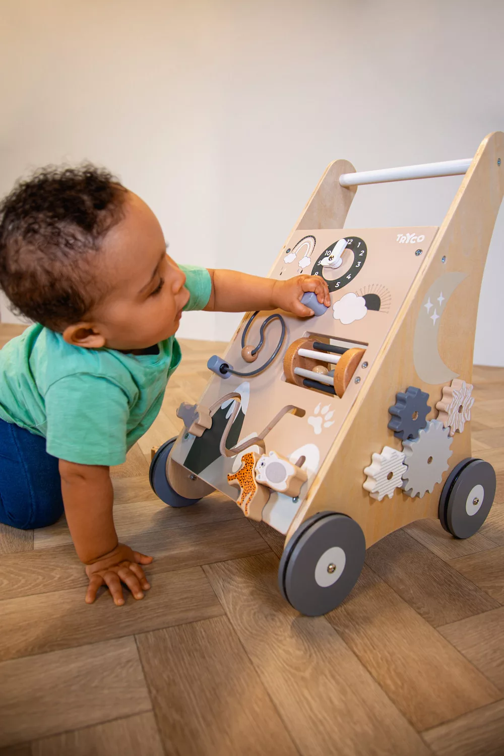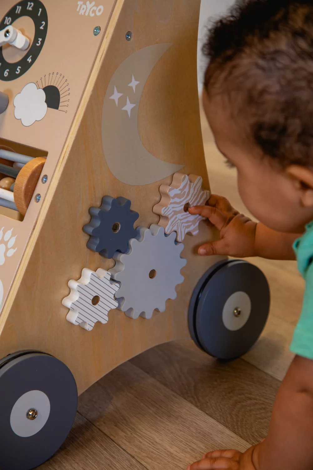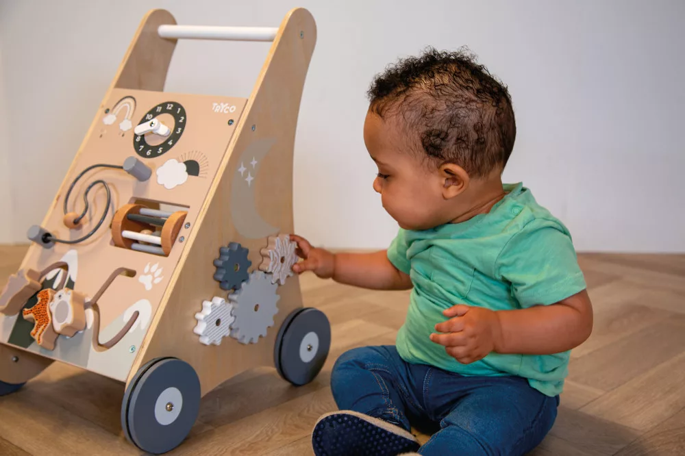 Tryco - fa járássegítő és formabedobó. A fából készült kocsi játékosan fejleszti a motoros készségeket és az érzékszervi képességeket és természetesen az első lépések megtételét és a járni tanulást.