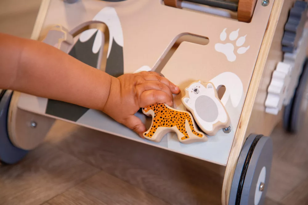 A járássegítő játék az önálló lépéseit próbálgató kisgyermeknek nyújt stabil kapaszkodót a járás gyakorlásához. Kezdetben használhatja felálláshoz, ám idővel, ahogy ügyesedik, egyre gyorsabban halad majd a segítségével. A járássegítő játék mozgásra motiválhatja a megkésett mozgásfejlődésű – 18 hónapos kora után sem önállóan járó – gyerekeket is.