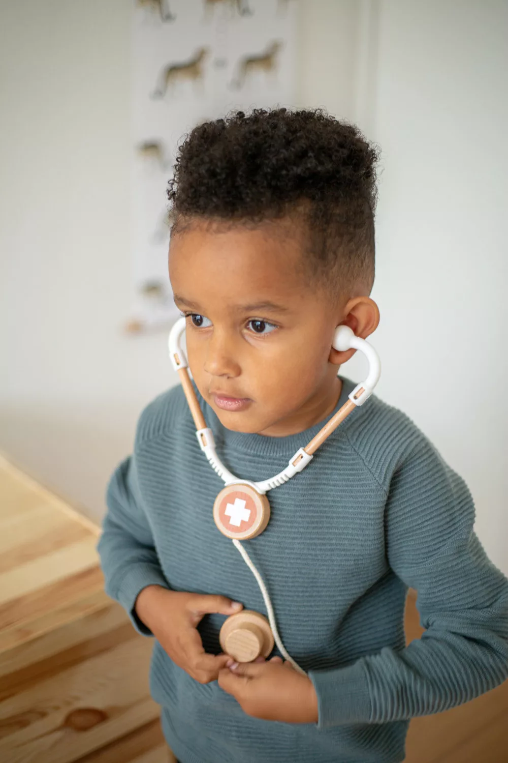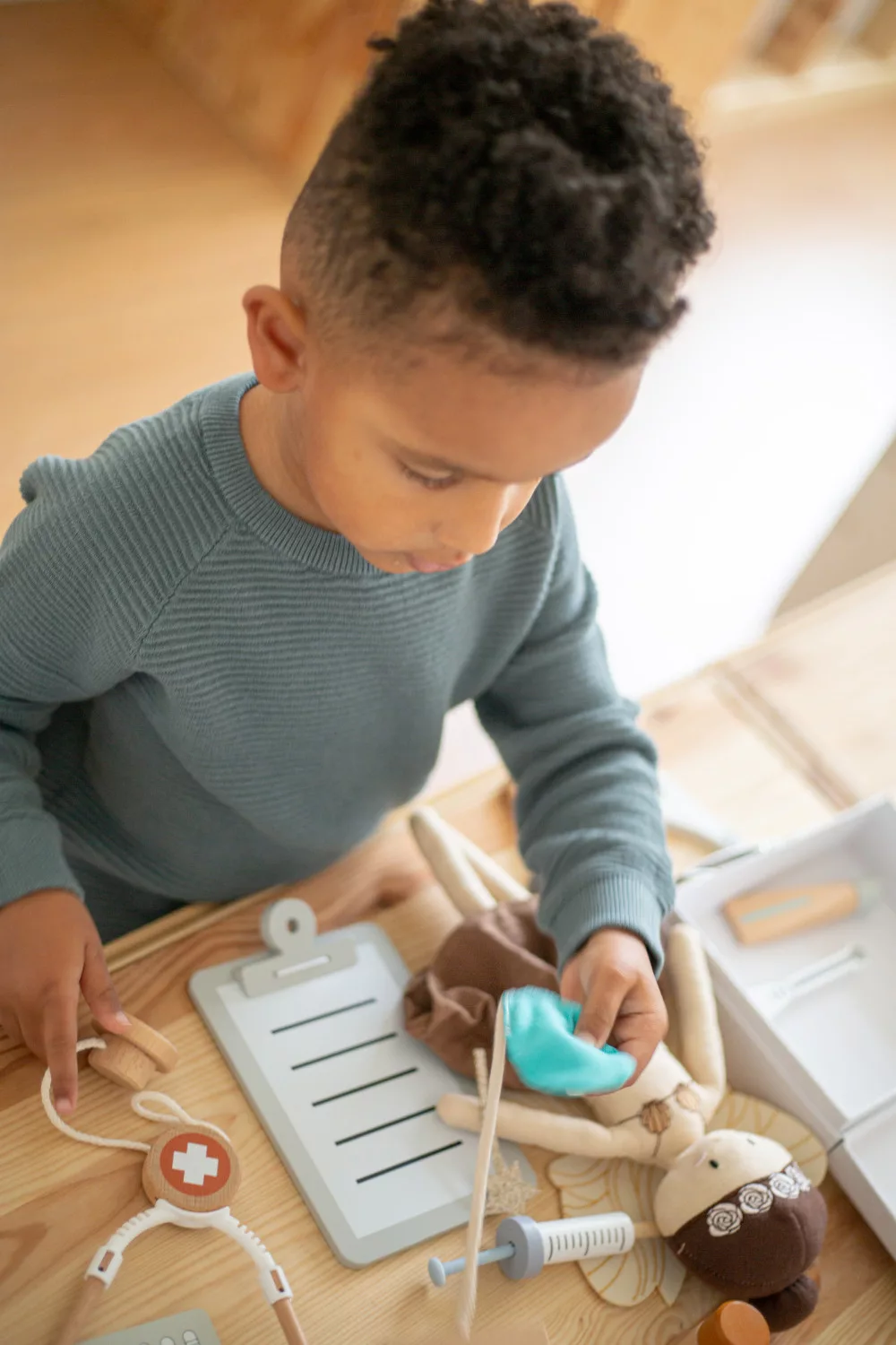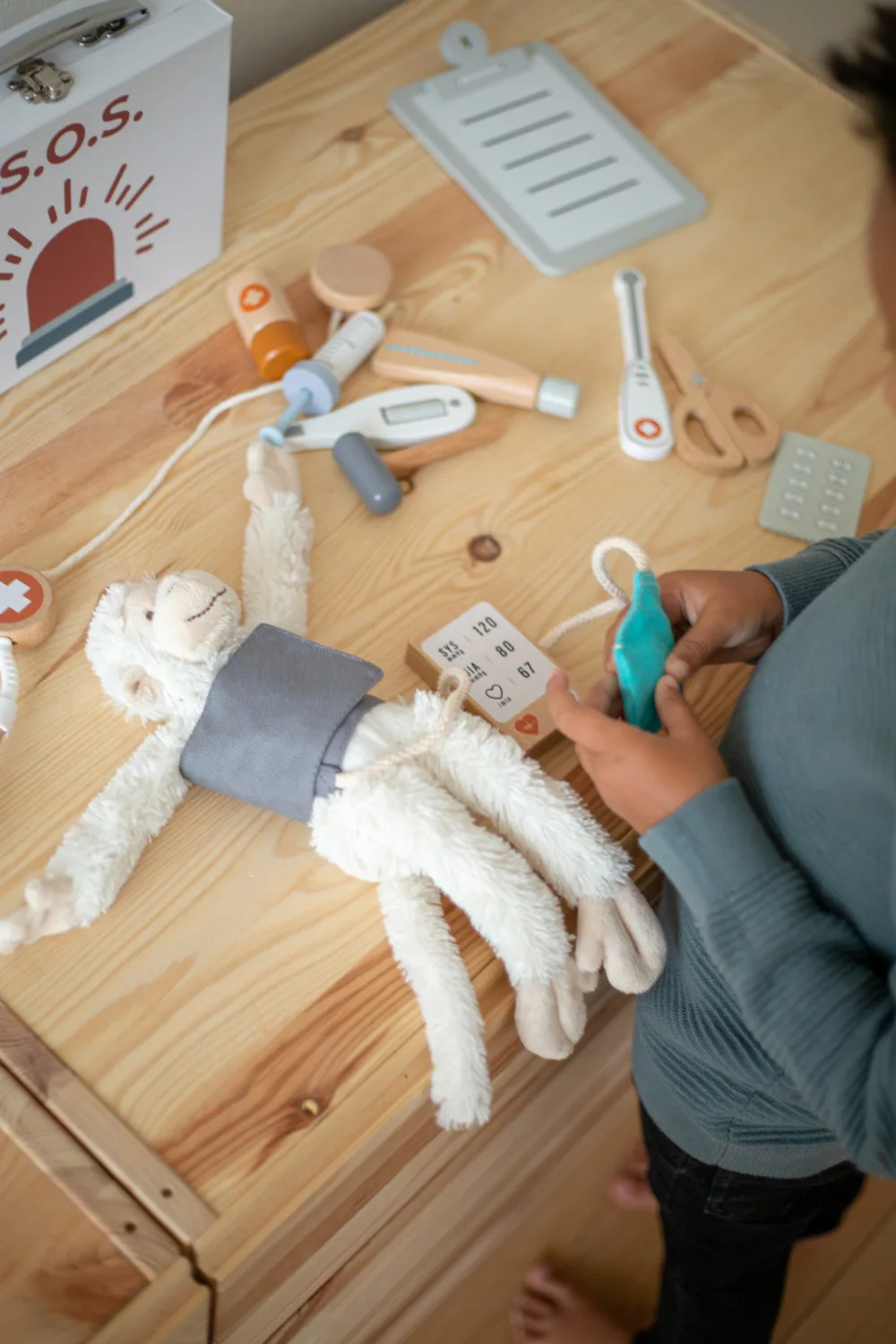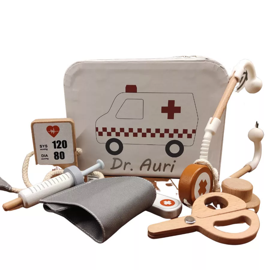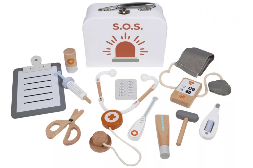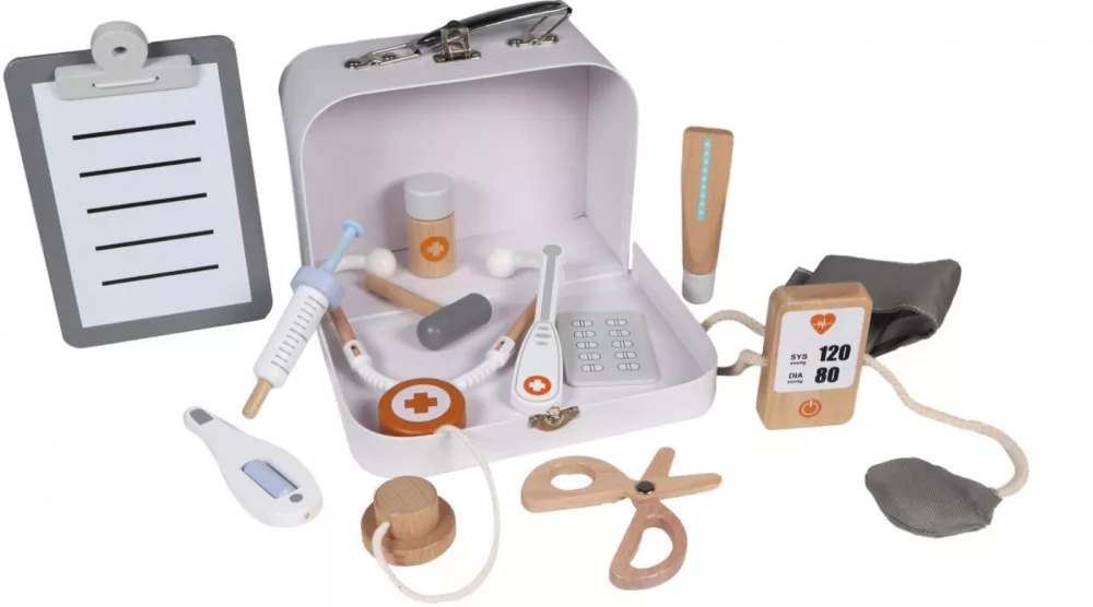 Az orvosi készletek egy gyerek játéktárának nélkülözhetetlen darabjai. Ebben a Tryco orvosi táskában, a legszükségesebb egészségügyi eszközöket is megtalálod,melyek Fsc fából készültek ( sztetoszkóp,fecskendő,tablettás doboz, olló,2 db lázmérő, gyógyszerek,kenőcs, vérnyomásmérő, és mind ezeket egy praktikus hordozható aktatáskában tárolhatod. Kiváló kiegészítő szerepjátékokhoz.