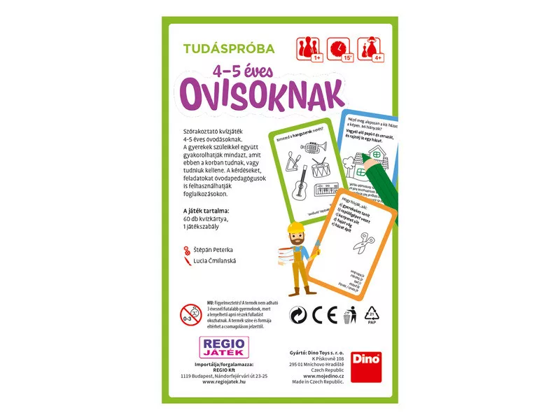 A kvízkérdéseket kifejezetten óvodáskorú gyermekek és szüleik (nagyszüleik, idősebb testvérek, tanárok) részére állítottuk össze. A kártyákon található feladványokat egy felnőttnek kell felolvasnia. A kérdések és a feladatok lefedik a 4–5 éves korosztálynak megfelelő készségeket és alapvető ismereteket.