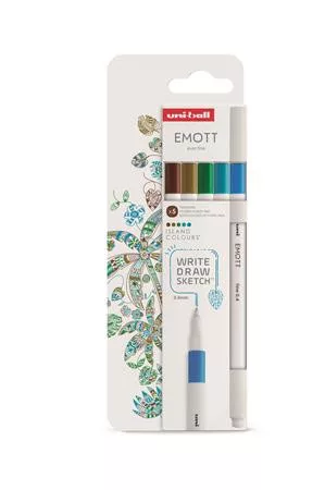 Az uni EMOTT egy tökéletes eszköz arra, hogy alkotásainkkal kifejezzük érzelmeinket, vagy éppen csak stílusosan jegyzeteljünk. -tollhegye külső borítással rendelkezik, amely megakadályozza a hegy elhajlását vagy szétválását -egyenletes vonalvastagság -vonalvastagság: 0,4 mm -vízálló pigmenttintát tartalmaz, ami nem folyik el és nem fakul ki -nem üt át a papíron, így bullett journal vezetésre és színezésre is kiválóan alkalmas -SZIGETVILÁG SZÍNEI készlet tartalmazza a következő színeket: égkék, türkiz, fenyő zöld, sötétsárga, barna -a termék csomagolása nem tartalmaz műanyagot