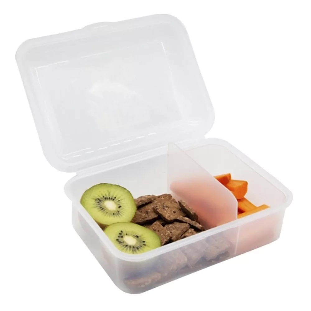 Gyermek műanyag uzsonnás doboz aranyos mintával és kivehető elválasztó rekesszel, amely segít külön tartani az ételeket. Ideális iskolai tízóraira – a kisiskolások imádni fogják! Mosogatógépben könnyen tisztítható, melegítéshez pedig mikrohullámú sütőben használható, ha a fedőt nyitva hagyja.