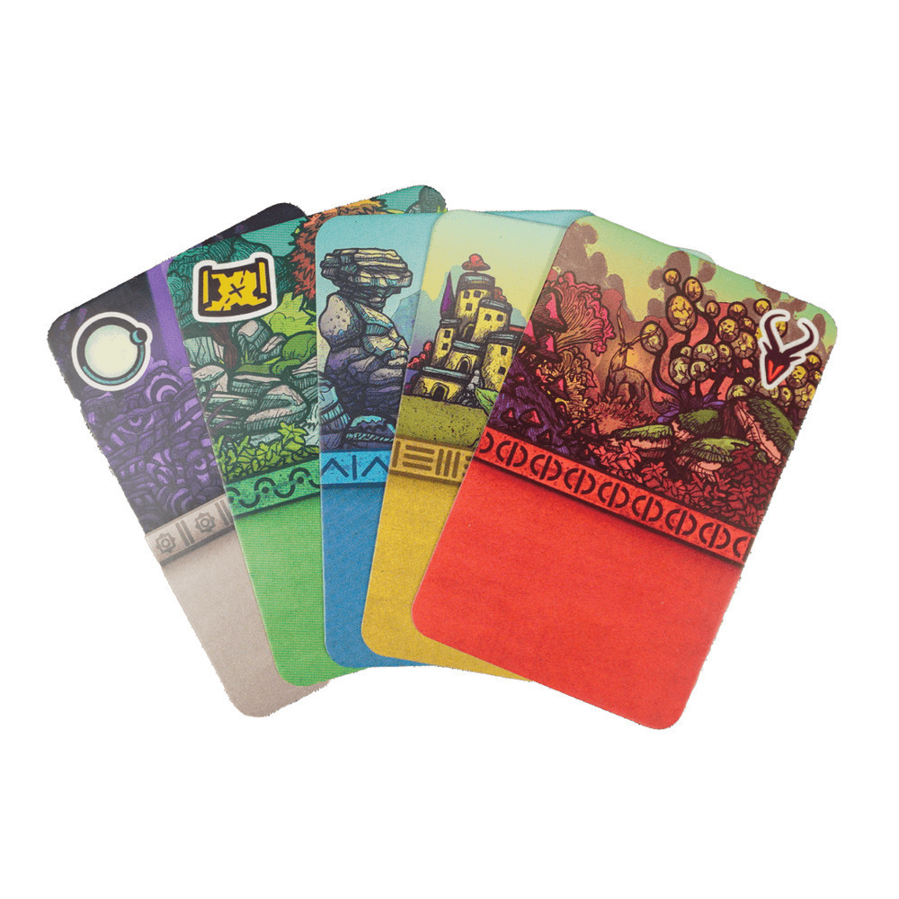 A játék során 8 kártyát játszotok ki magatok elé meghatározott sorrendben, balról jobbra haladva. Ezek jelképezik a kontinens általatok felfedezett részeit. Mindegyik kártya egy-egy régiót ábrázol, és mindegyiken a sziget csodáinak egy részét és lakosait ismeritek meg. Ők arra fognak kérni, hogy fedezzétek fel számukra a szigetet, meghatározott erőforrásokat keresve.