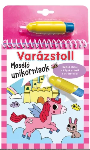 A Varázstoll - Mesélő unikornisok vízzel festhető színező egyedülálló módon vezeti be a gyerekeket az unikornisok mesés világába. Találkozz Felhővel, a repülő unikornissal, Levéllel, a mesélővel, Kristállyal, aki imádja a vízeséseket, és Zoéval, az állatok védelmezőjével! A varázstoll segítségével minden kép színei életre kelnek, és újra és újra megfesthetők. Ez a kreatív színező tökéletes ajándék minden unikornisrajongó gyermek számára.
