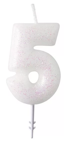 Fehér White csillámos gyertya 5-ös 6,5 cm