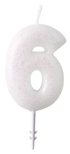 White, Fehér csillámos gyertya 6-os 6,5 cm