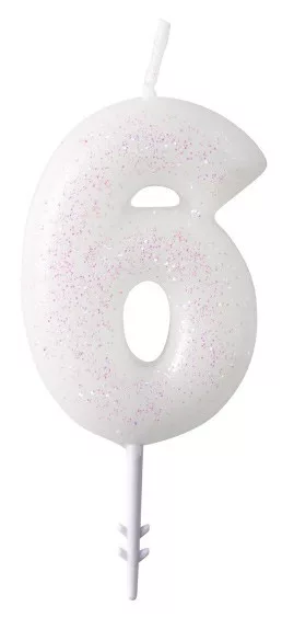 Fehér White csillámos gyertya 6-os 6,5 cm