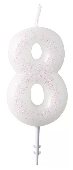 White, Fehér csillámos gyertya 8-as 6,5 cm