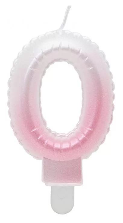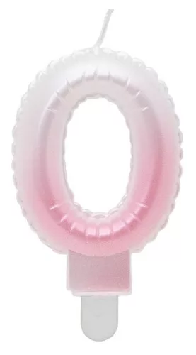 Fehér-Rózsaszín 0-ás Ombre számgyertya, tortagyertya