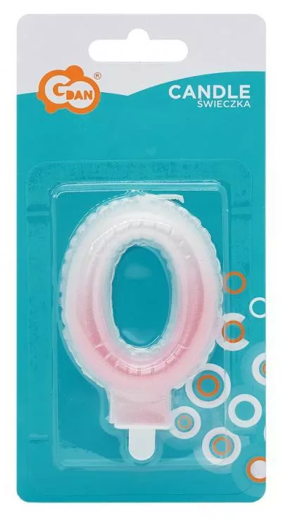 Fehér-Rózsaszín számgyertya, tortagyertya 0-ás