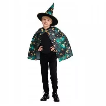Zöld varázsló jelmez - köpeny, kalap, 110/120 cm