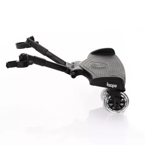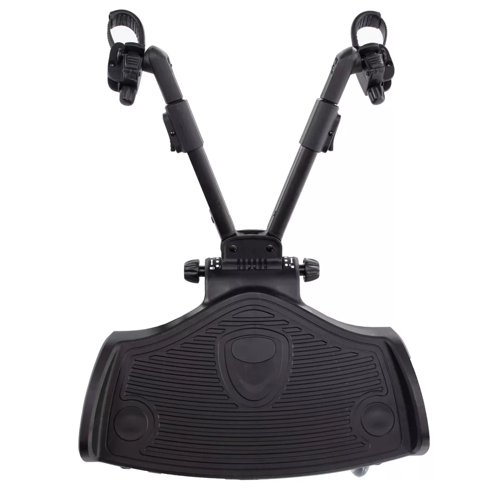 LeírásA fellépõn az idõsebb, már járni tudó gyermek is utazhatAz új Segboard fellépõt minden olyan szülõ értékelni fogja, aki babakocsiban tolja kisbabáját, és egyben gondoskodik egy idõsebb gyermekrõl is, aki már egyedül jár. Az idõsebb testvér nem mindig képes megtenni az egész utat, és olyankor felmerül a kellemetlen dilemma, hogy mi legyen vele. Ebben a helyzetben a Segboard fellépõ a legjobb segítség, amely bárhol könnyedén rögzíthetõ a babakocsira. A Segboard a legtöbb babakocsi alvázához illeszkedik, ami új lehetõségeket tár fel az Ön számára. Felejtse el a korlátozásokat, az idõsebb testvér is bárhová kényelmesen utazhat a kisebbel.A Segboard fejlesztésekor nemcsak a kényelmes utazásra gondoltunk, de a könnyû használatra is. A Segboard ezért egy egyszerû babakocsira rögzíthetõ rendszerrel van felszerelve, és ha nem használja a fellépõt, könnyen eltávolítható. Például a kosárba teheti, hogy ne zavarja.A Segboard annyira variábilis, hogy a rögzítõ karok szögeinek és hosszának beállítása lehetõvé teszi, hogy szinte minden babakocsira rögzíthetõ. A fellépõ rugós kerekei és azok 12cm átmérõje, valamint gumiabroncsok és golyóscsapágyak biztosítják a sima utazást minden felületen.Hogy az utazás a gyermek számára a lehetõ legkényelmesebb legyenHa a gyermek a fellépõn nem akar állni, kiegészíthetõ ülõkével. Praktikus fogantyúval és kárpitozott üléssel van felszerelve. A baba így majd kényelmesen érzi magát, és a közös séta mindig mosolyogva fog zajlani.Teherbírás 20 kgSzinte minden típusú babakocsihoz alkalmasRobusztus felépítés, egyszerûen rögzíthetõ és egyszerûen eltávolíthatóTeleszkópos rögzítõkarok állítható szöggelA rugós kerekei és azok 12cm átmérõje, valamint a gumiabroncsok és golyóscsapágyak kényelmes utazást biztosítanak.