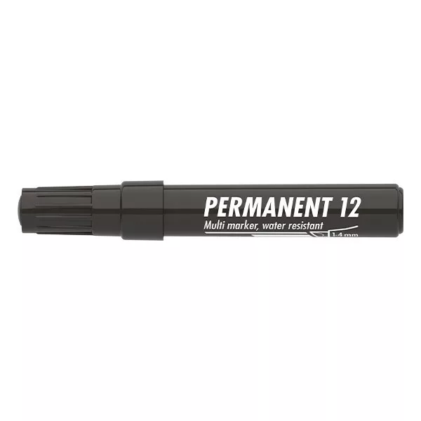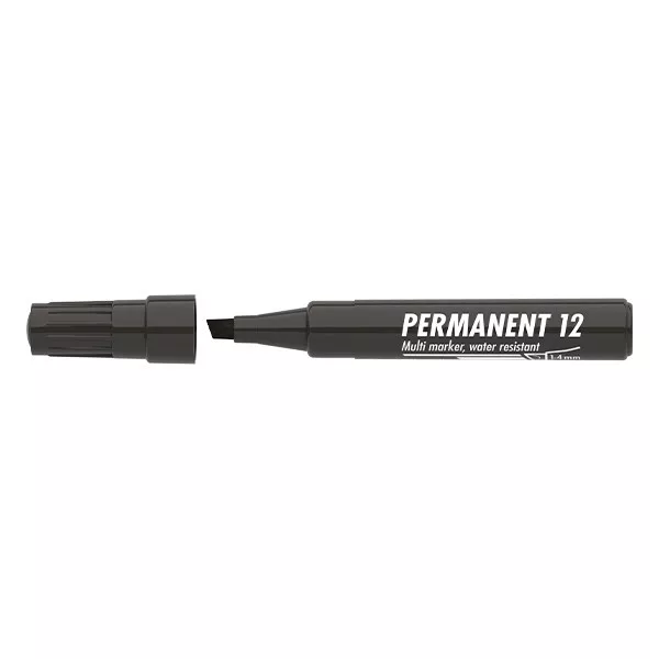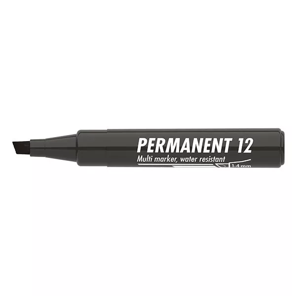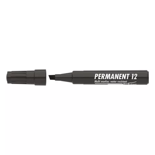 Műanyag, üveg, fém, fa illetve szinte minden felület feliratozására , jelölésére alkalmas, alkoholbázisú festékkel töltött permanent marker. Írásképe száradás után törlés-és vízálló. Vágott csúccsal, klipszes kupakkal. Vonalvastagság: 1-4 mm