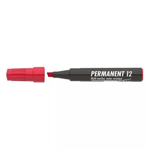 Műanyag, üveg, fém, fa illetve szinte minden felület feliratozására , jelölésére alkalmas, alkoholbázisú festékkel töltött permanent marker. Írásképe száradás után törlés-és vízálló. Vágott csúccsal, klipszes kupakkal. Vonalvastagság: 1-4 mm